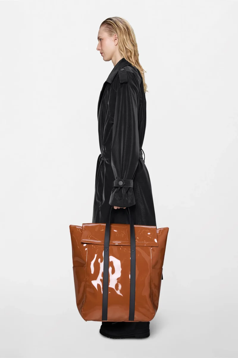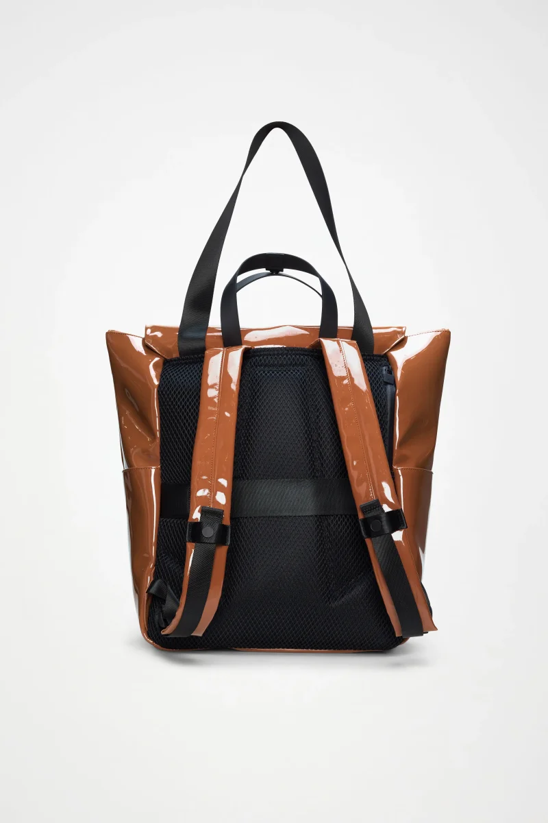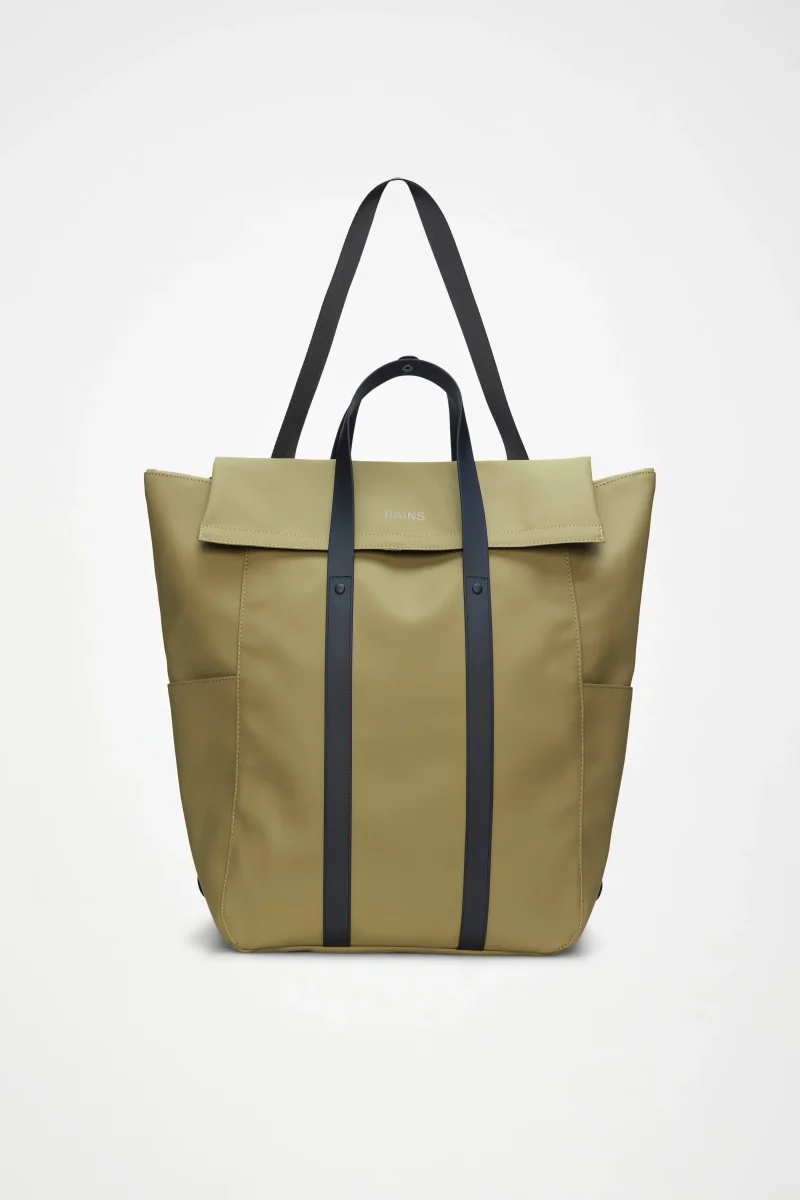 Da indossare come zaino con i comodi spallacci imbottiti, a tracolla o in modalità tote utilizzando i manici. Realizzato nell’iconico tessuto PU di Rains, resistente, impermeabile e liscio al tatto.
