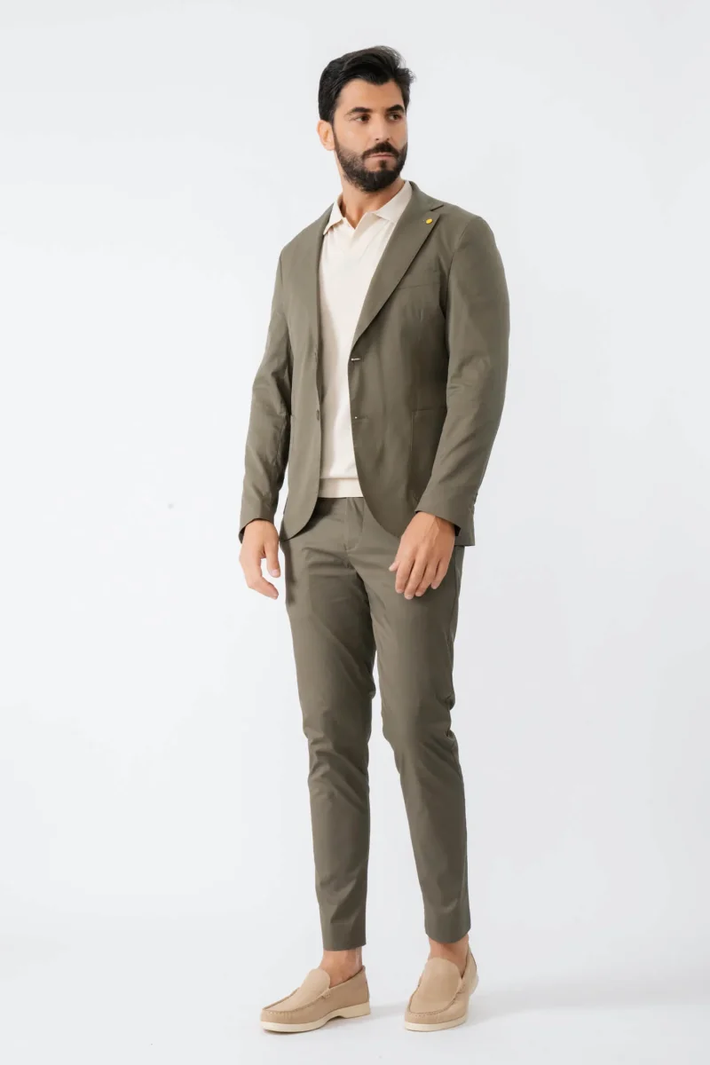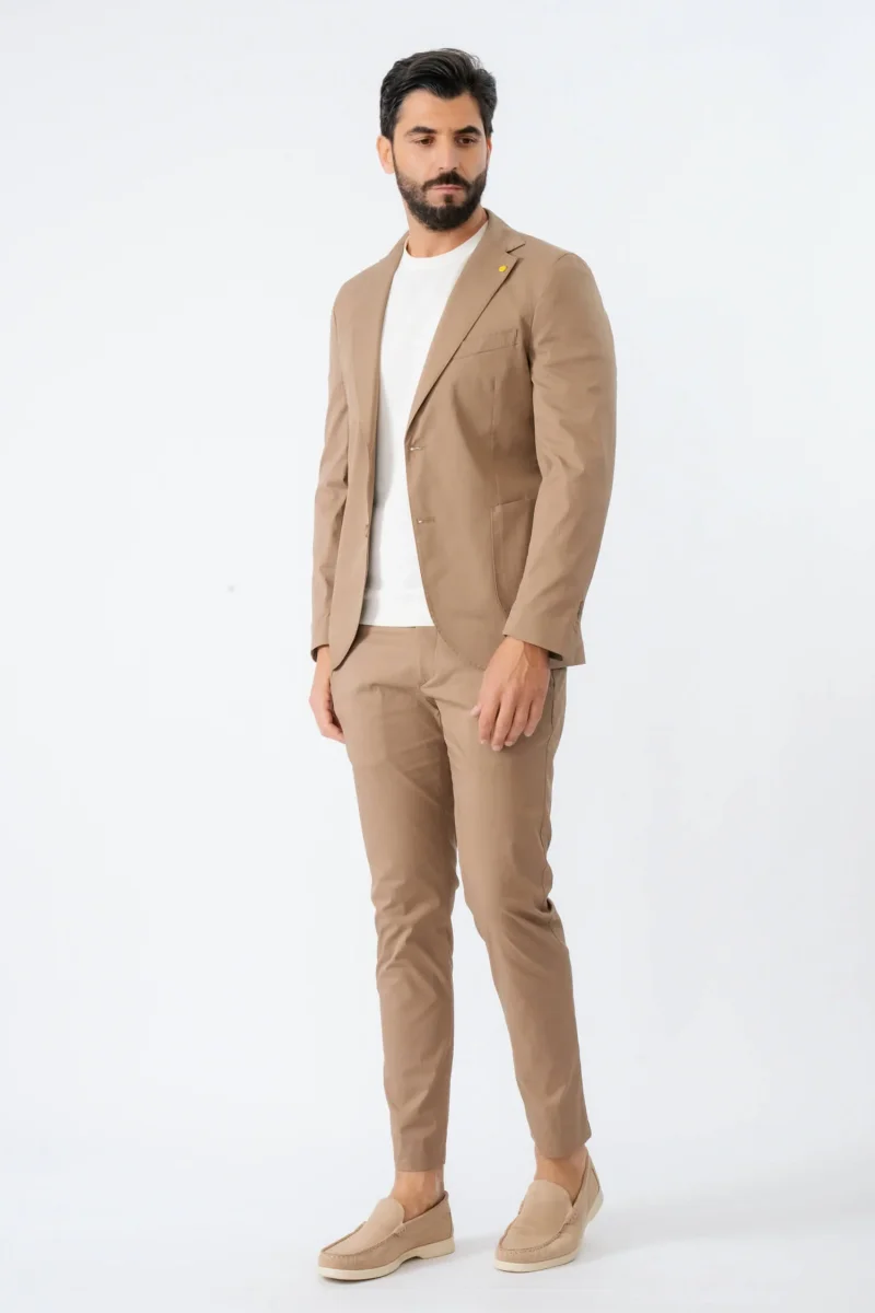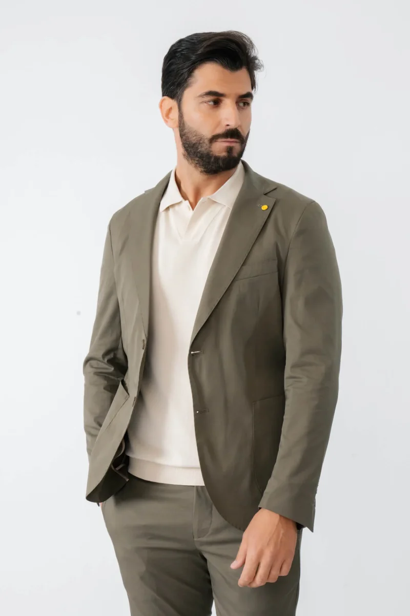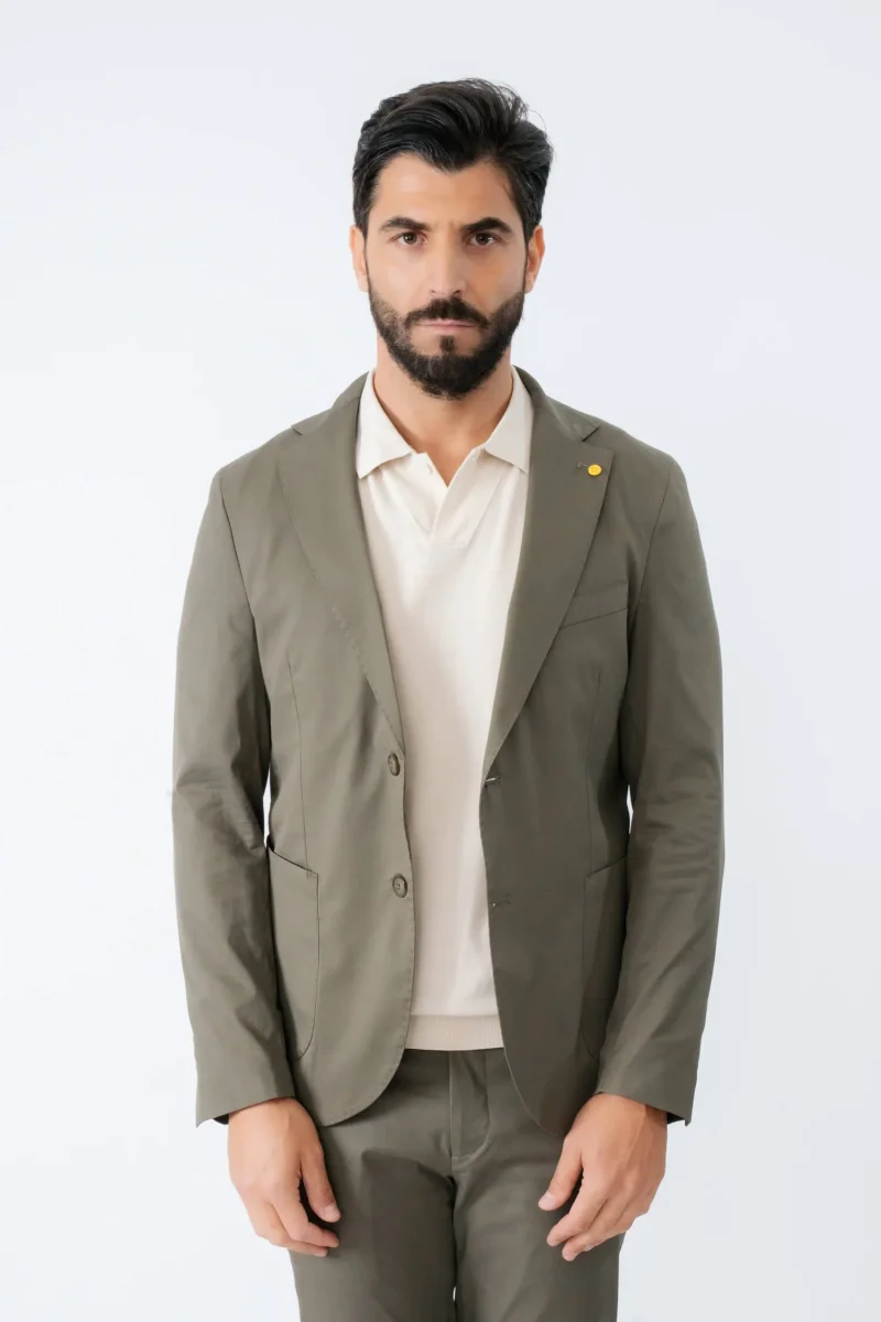Abito tinta unita Chiusura a 2 bottoni Tasche con pattina e taschino su petto a sinistra Bavero largo 7,5 cm , con occhiello a sinistra Polsino con quattro bottoni e asole chiuse, doppio spacco sul retro Interamente sfoderato all’interno Pantalone tinta unita , taglio regular fit Chiusura con cerniera nascosta da patta e bottone Due […]