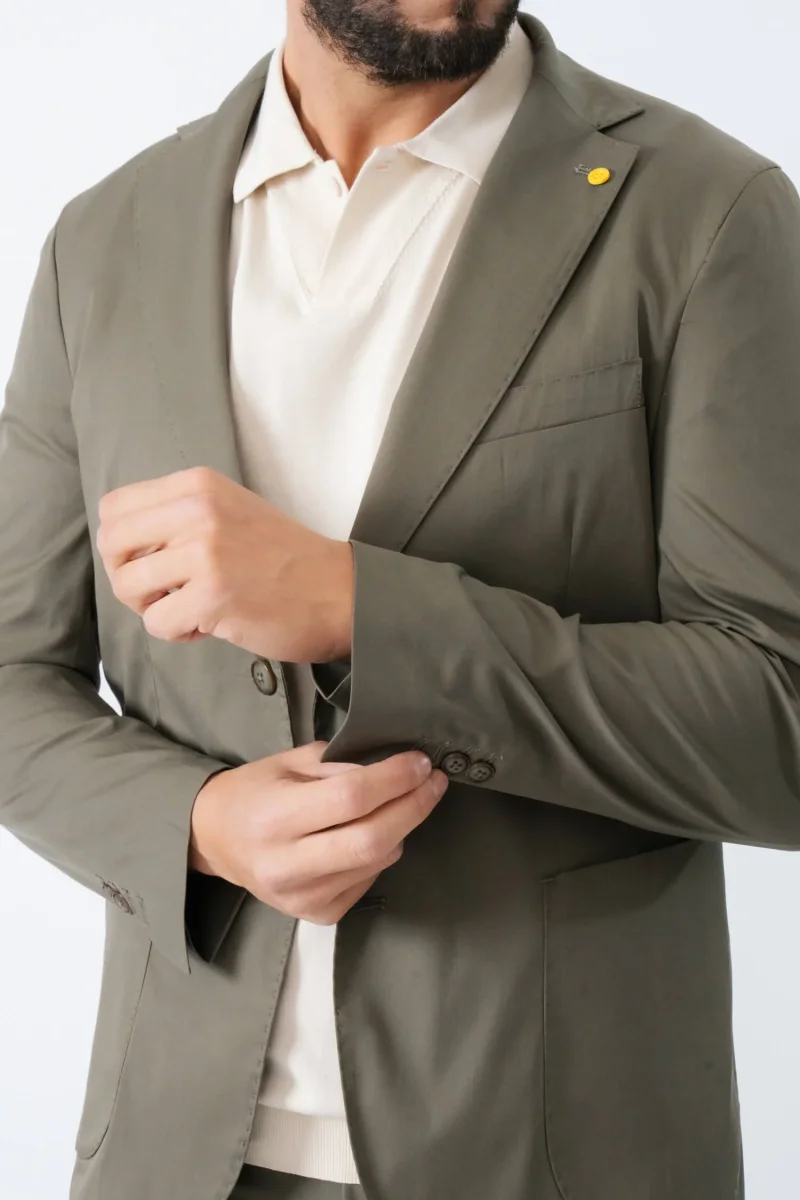 - Polsino con quattro bottoni e asole chiuse, doppio spacco sul retro
