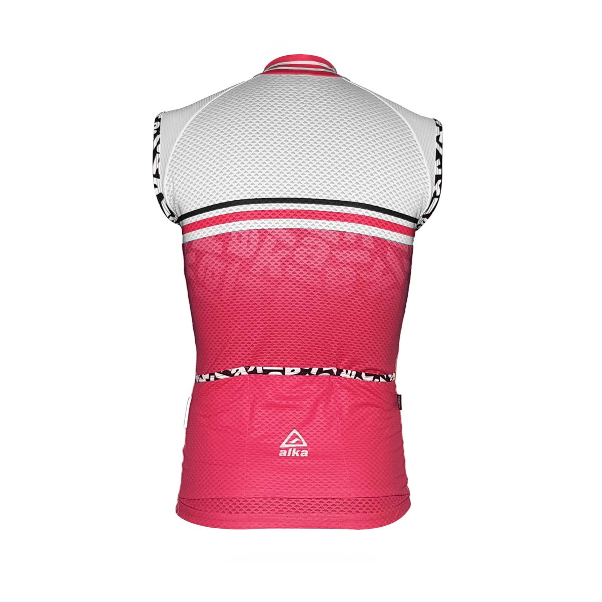 – Maglia donna smanicata con grafica stampata- Vestibilità Regular – Tessuti diversificati a seconda della zona: – Tessuto 100% Polyestere traspirante ultraleggero – Fianchi in tessuto 3D- Fondo maglia con elastico interno personalizzato siliconato – Lampo coperta – Bordino giromaniche e tasca personalizzato Alka