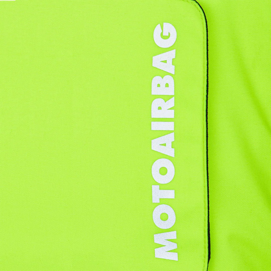 - Lateralmente รจ presente un soffietto nascosto che si espande in caso di attivazione sia per permettere al sistema airbag di espandersi correttamente sia per garantire che il pilota non sia oppresso dal sistema airbag: con lโairbag gonfio รจ comunque possibile continuare a guidare, scendere salire dalla moto, girare la testa per guardarsi attorno, respirare normalmente