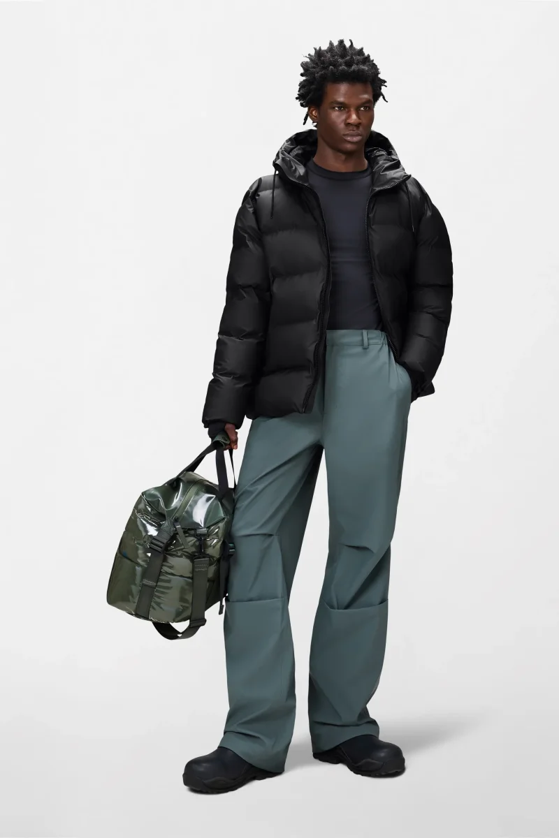 Questo piumino raffinato è costruito con la tecnologia a camere impunturate e realizzato nell’iconico tessuto PU di Rains con cuciture a doppia saldatura. Il finish è leggero, resistente e morbido al tocco.