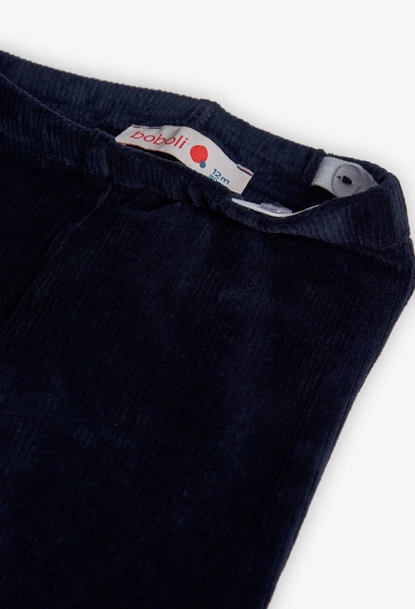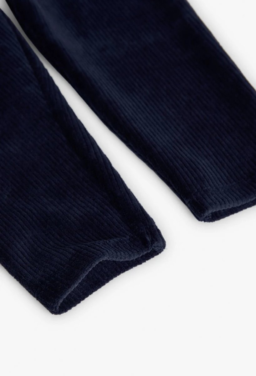 Leggings in velluto a coste per bambina in colore blu marino, perfetti per qualsiasi periodo dell’anno. Realizzati con un tessuto a maglia morbido, garantiscono comfort e libertà di movimento per le più piccole. Il tono blu marino, fresco e versatile, consente di abbinarli facilmente con vestiti, magliette o giacche. La vita elastica assicura una vestibilità comoda e sicura, ideale per accompagnare la crescita del bebè. Disponibili in taglie da 12 mesi a 10 anni, sono un capo essenziale nel guardaroba infantile.