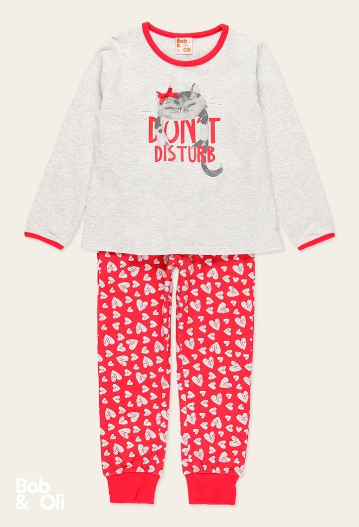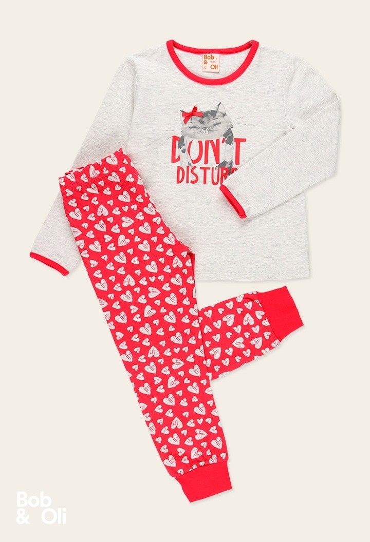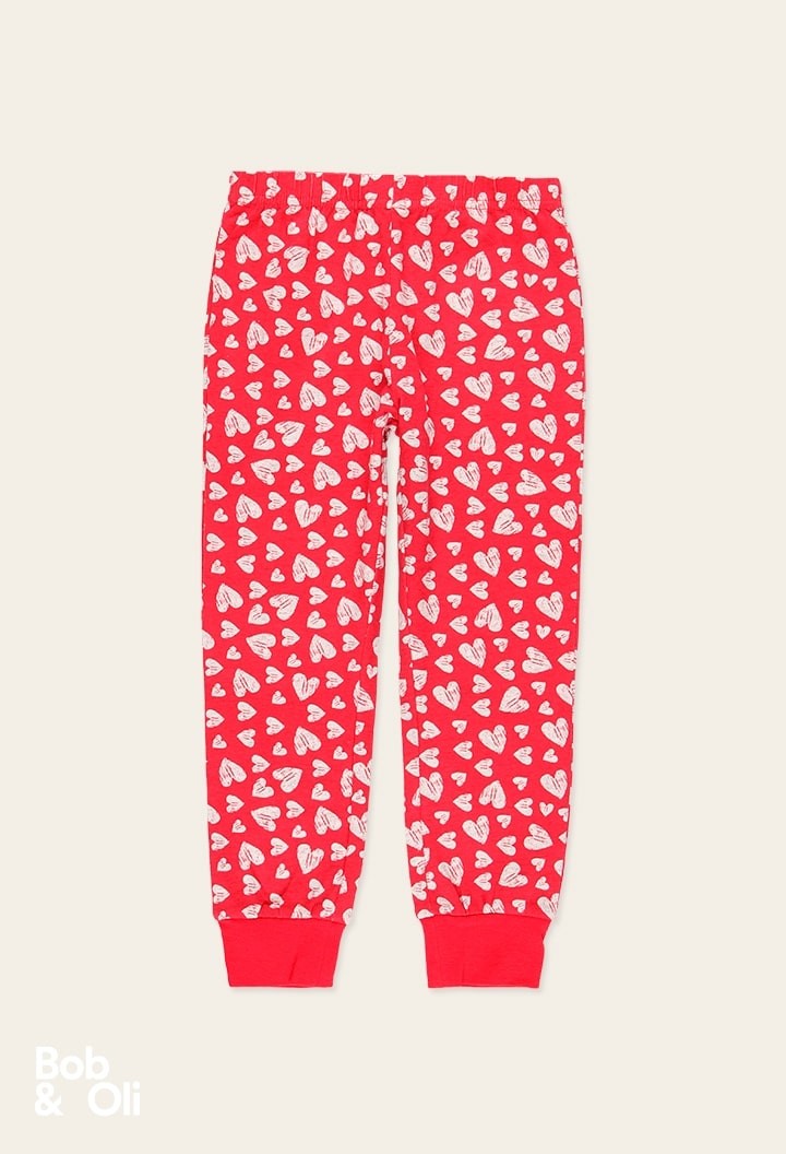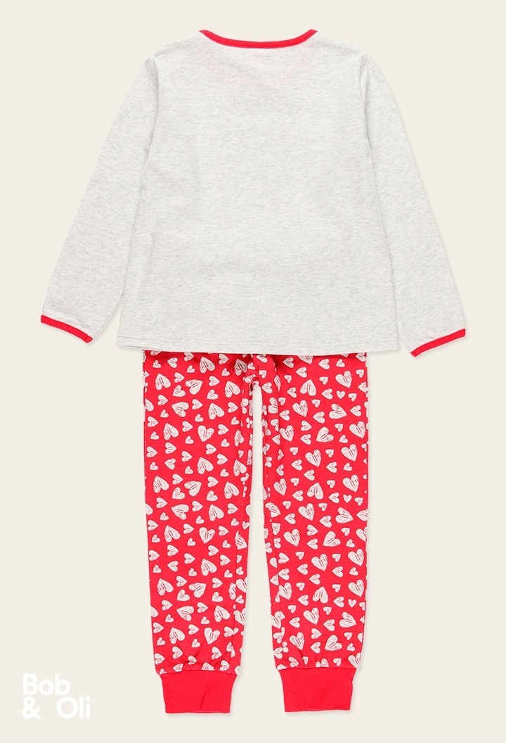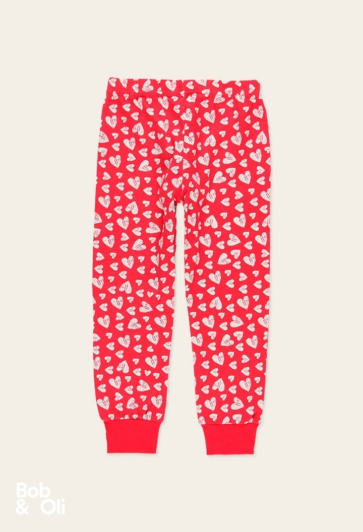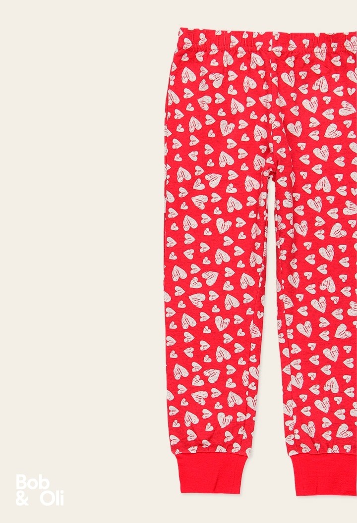 COMPOSIZIONE:Maglione:95% cotone, 5% elastan Pantaloni:95% cotone, 5% elastan.Pantaloni rossi con cuori e maglia grigia con fantasia.