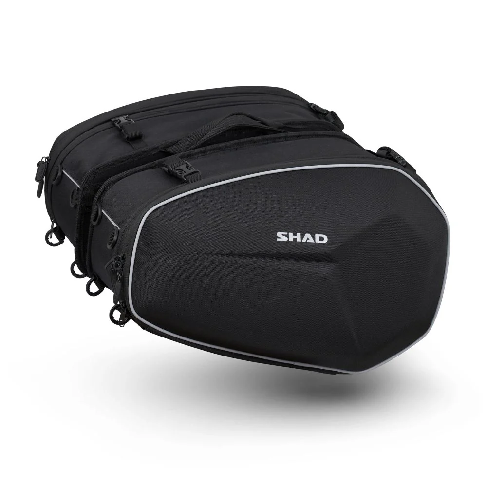 Borse espandibili da 46 a 58 litri di capacità (2 unità ). Ha 3 modalità di installazione sulla moto, i sistemi di fissaggio SHAD SR o SBH per le moto compatibili o con cinghie universali. I sistemi di montaggio SHAD garantiscono la massima stabilità e l’integrazione estetica alla bicicletta con un peso minimo che dà solidità all’insieme.