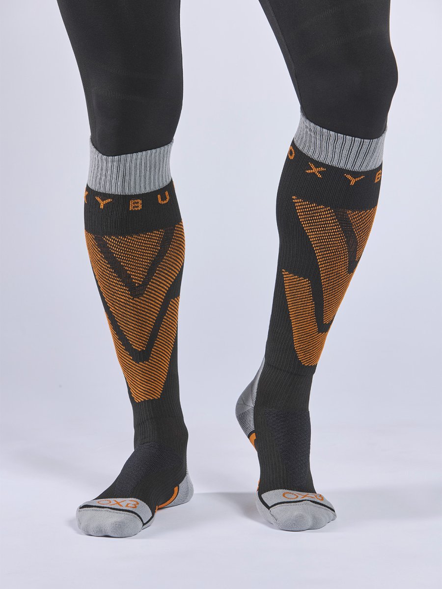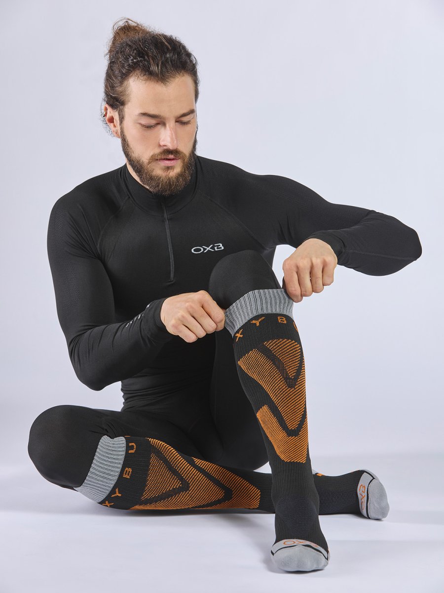 Calza sci knee-high con struttura a densità differenziate che garantisce perfetta vestibilità e protezione.