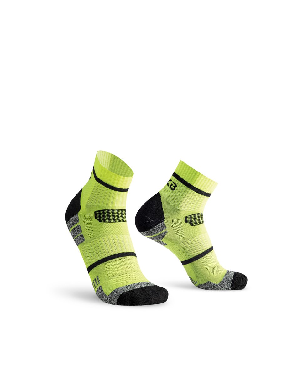 Calza sportiva short-cut con struttura a densità differenziate che garantisce una perfetta vestibilità e una protezione totale del piede.