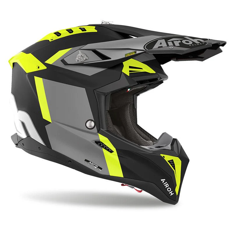 Tecnologie: AMSยฒ Plus – AIROH Multiaction Safety System Plus, AMLS โ AIROH Magnetic Lining System, AEFR โ AIROH Emergency Fast Release e Hydra System