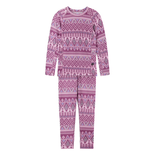 Completo termico Reima con i nuovi pattern ispirati dall’aurora boreale della Lapponia! Bellissimo completo in lana merino misto composto da maglietta e pantaloni sulle tonalità del rosa. Morbidissimo tencel a contatto con la pelle, il calore della lana merino all’esterno rende questo completo perfetto sotto la tuta da sci, per dare uno strato di calore in più per giocare sulla neve oppure per stare comodi in casa durante i mesi più freddi. Materiale traspirante che tiene molto caldo ma sottile da non risultare ingombrante, cuciture piatte per extra comfort. Consigliamo la taglia giusta in base all’altezza del bimbo, il completo…