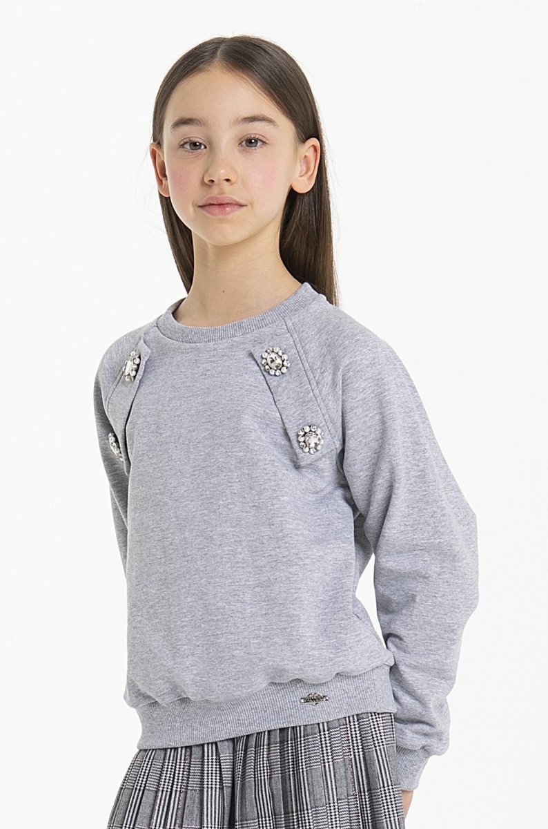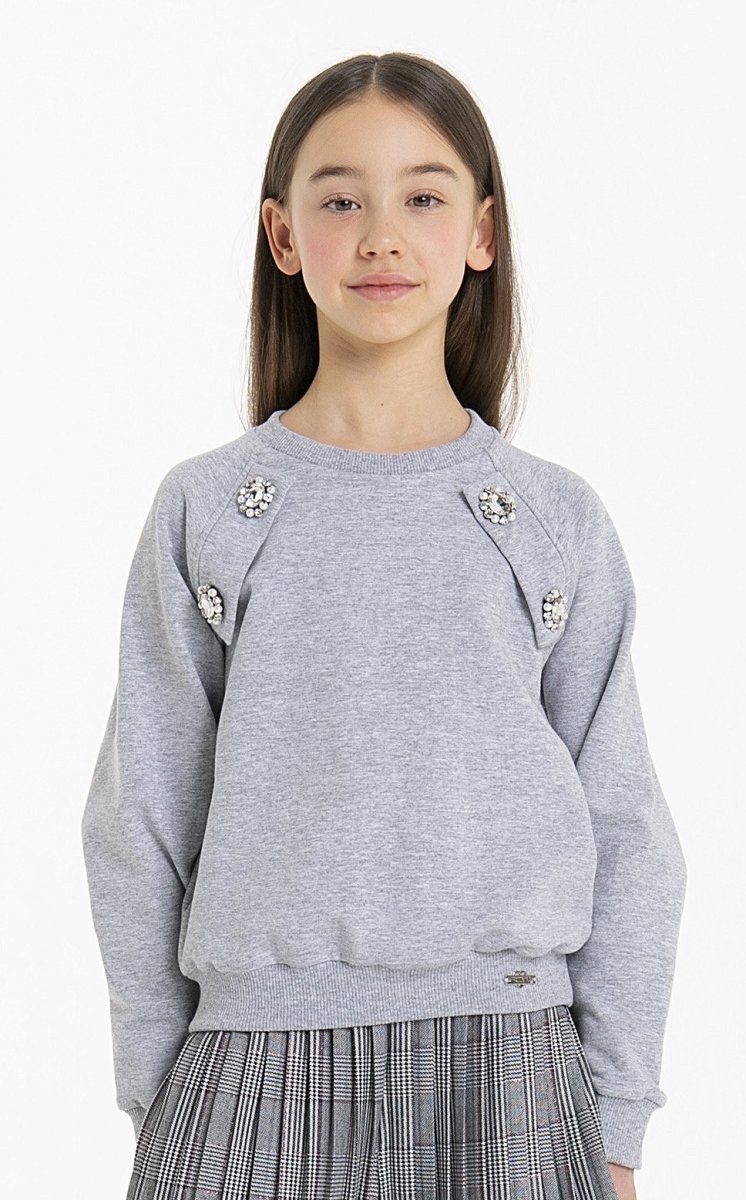 FRACOMINA FELPA GRIGIA APPLICAZIONI GIOIELLO RAGAZZA F621WT7052F40101-156