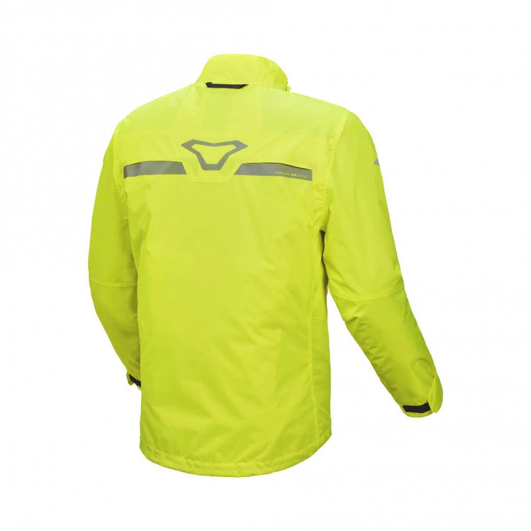 Giacca antipioggia dotata di dettagli riflettenti. Regolazione con velcro su polsi e sul collo.
