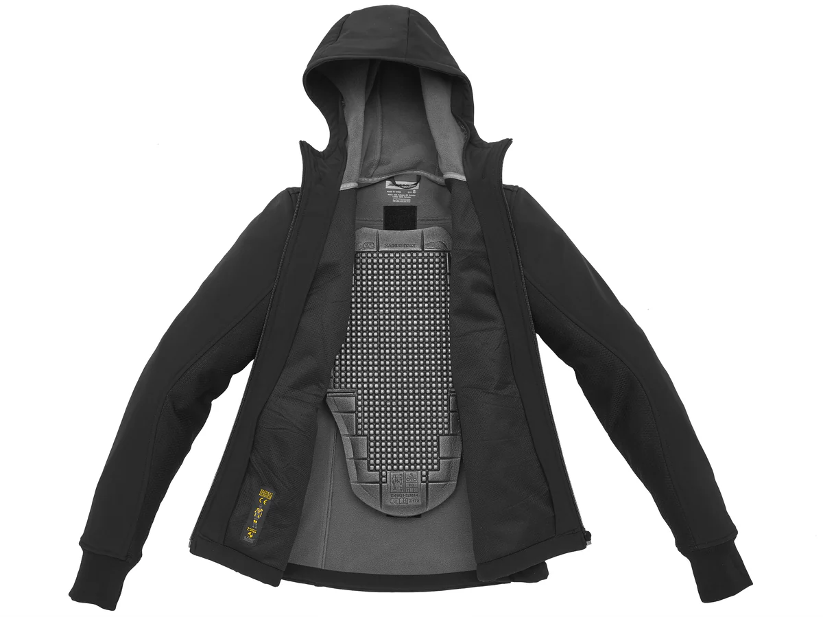 La nuova SPIDI Hoodie Armor Lady รจ la versione da donna del popolare modello maschile. La giacca certificata prEN 17092-4: 2017 Classe A, ha un cappuccio integrato, protezioni Warrior Lite certificate Livello 1 rimovibili su spalle e gomiti, con paraschiena Back Warrior opzionale (Livello 1 En 1621-2: 2012).