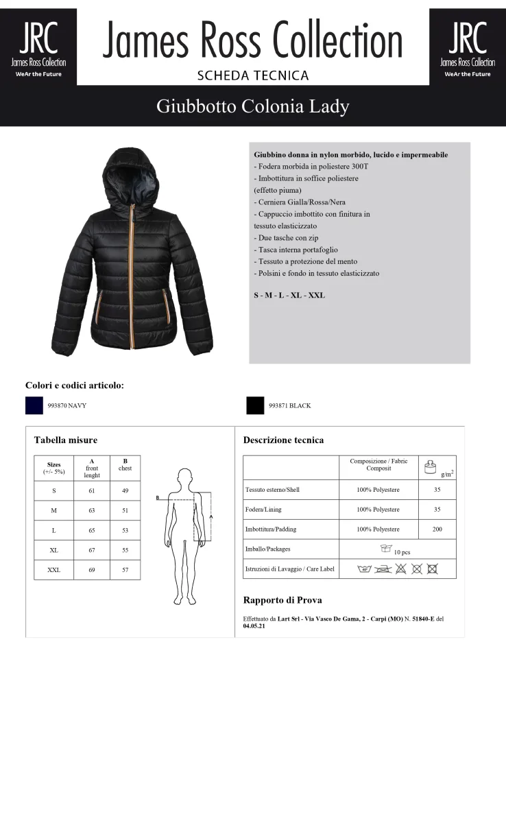 GIACCA IMBOTTITA IMPERMEABILE JRC COLONIA LADY DONNA