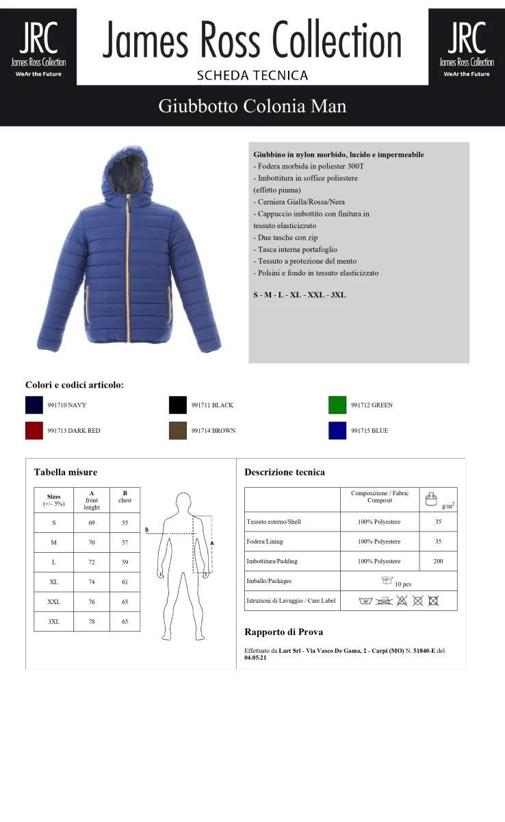 GIACCA IMBOTTITA IMPERMEABILE JRC COLONIA MAN UOMO