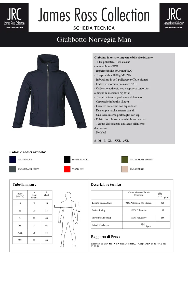 GIACCA IMBOTTITA IMPERMEABILE JRC NORVEGIA MAN UOMO