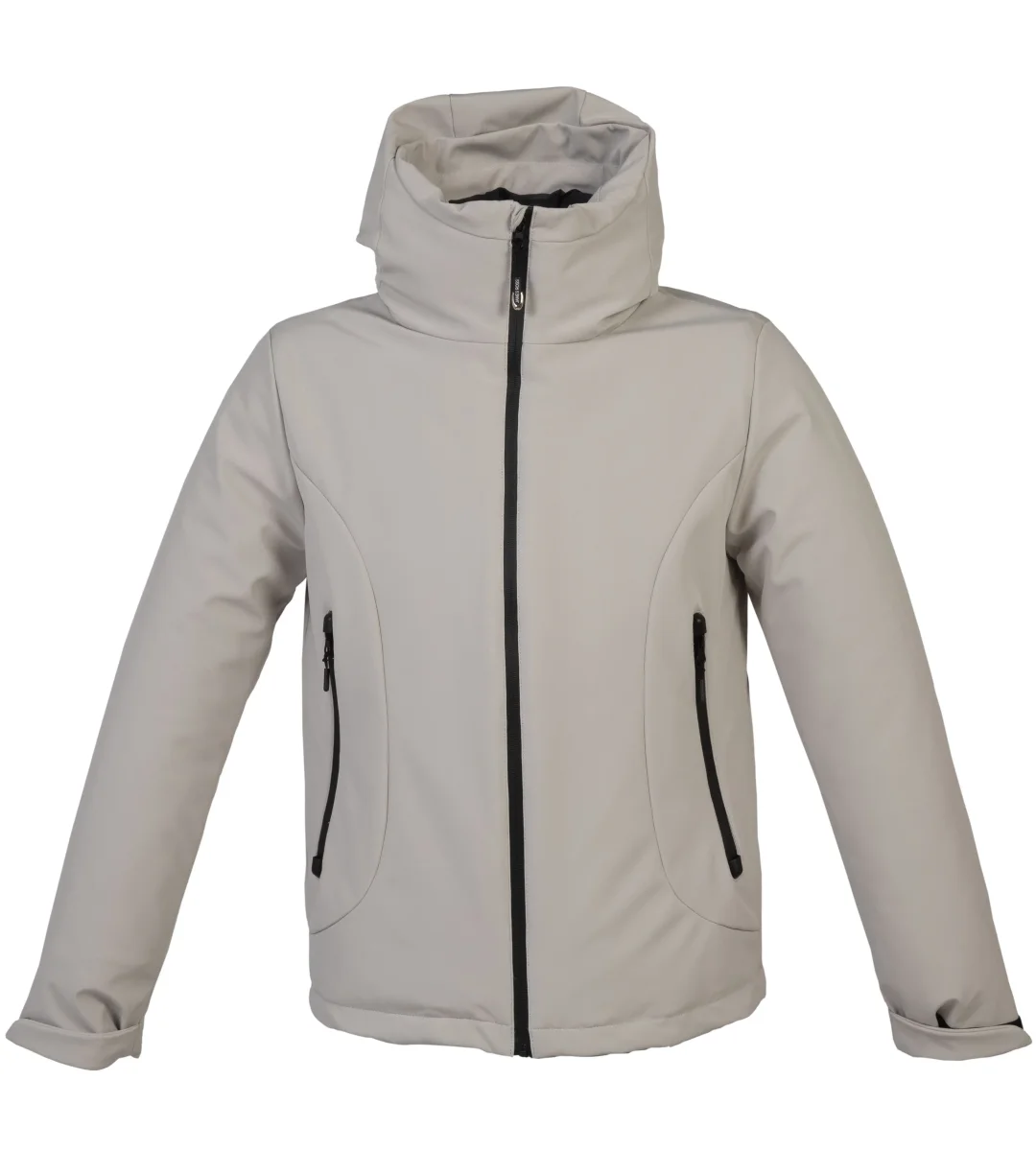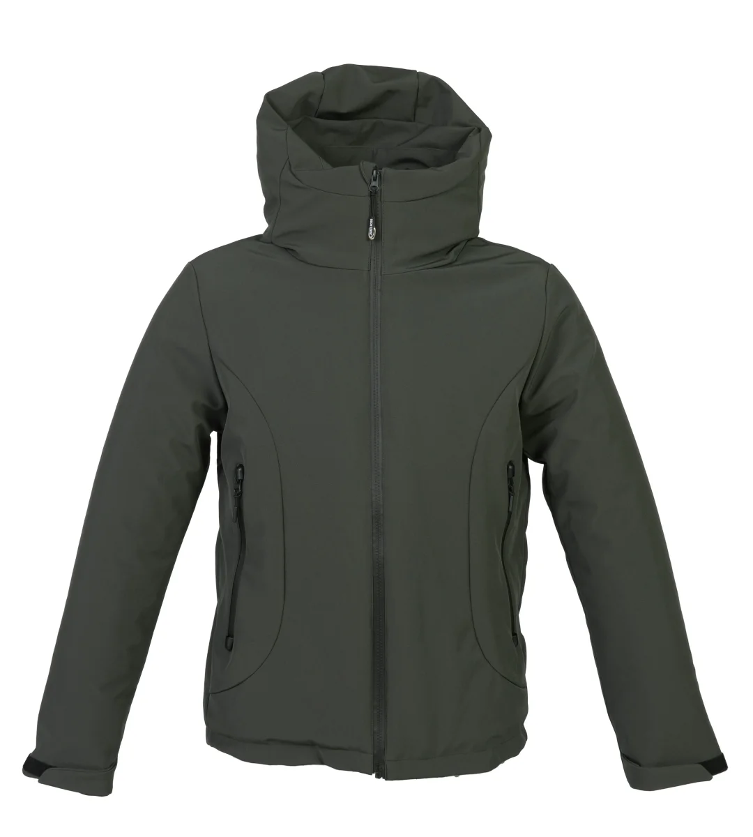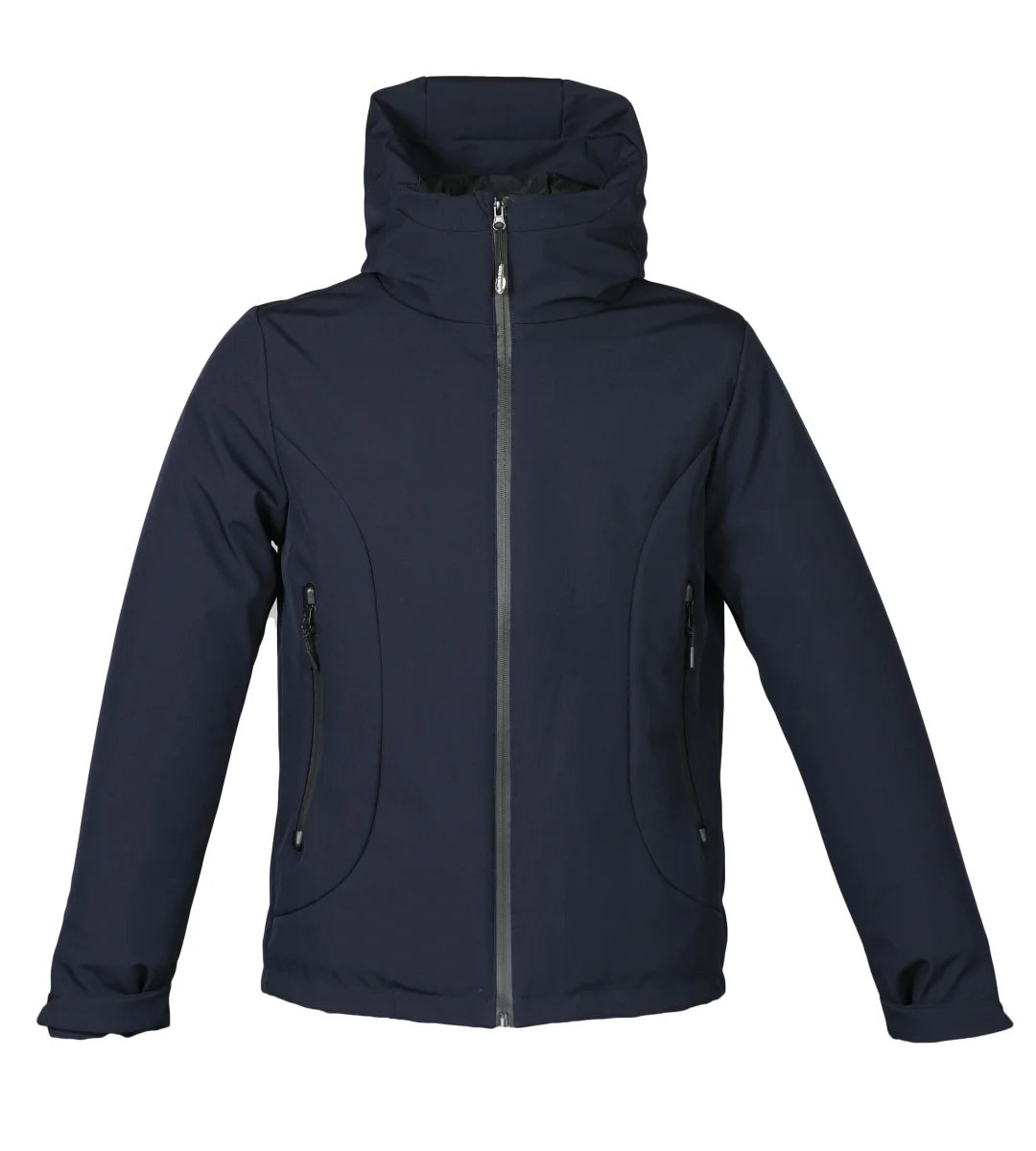 Giubbino in tessuto impermeabile elasticizzato – 94% poliestere โ 6% elastan con membrana TPU – Impermeabilitร 4000 mm/H2O – Traspirabilitร 1000 g/M2/24h – Imbottitura in soft poliestere (effetto piuma), fodera in morbido poliestere 320T, collo alto antivento con cappuccio imbottito allungabile mediante zip (Man). Tessuto interno a protezione del mento, cappuccio imbottito (Lady), cerniere antiacqua con taglio laser, due ampie tasche esterne con zip e una tasca interna portafoglio con zip. Polsini con chiusura regolabile con velcro, tessuto elasticizzato antivento all’interno dei polsini – No label.