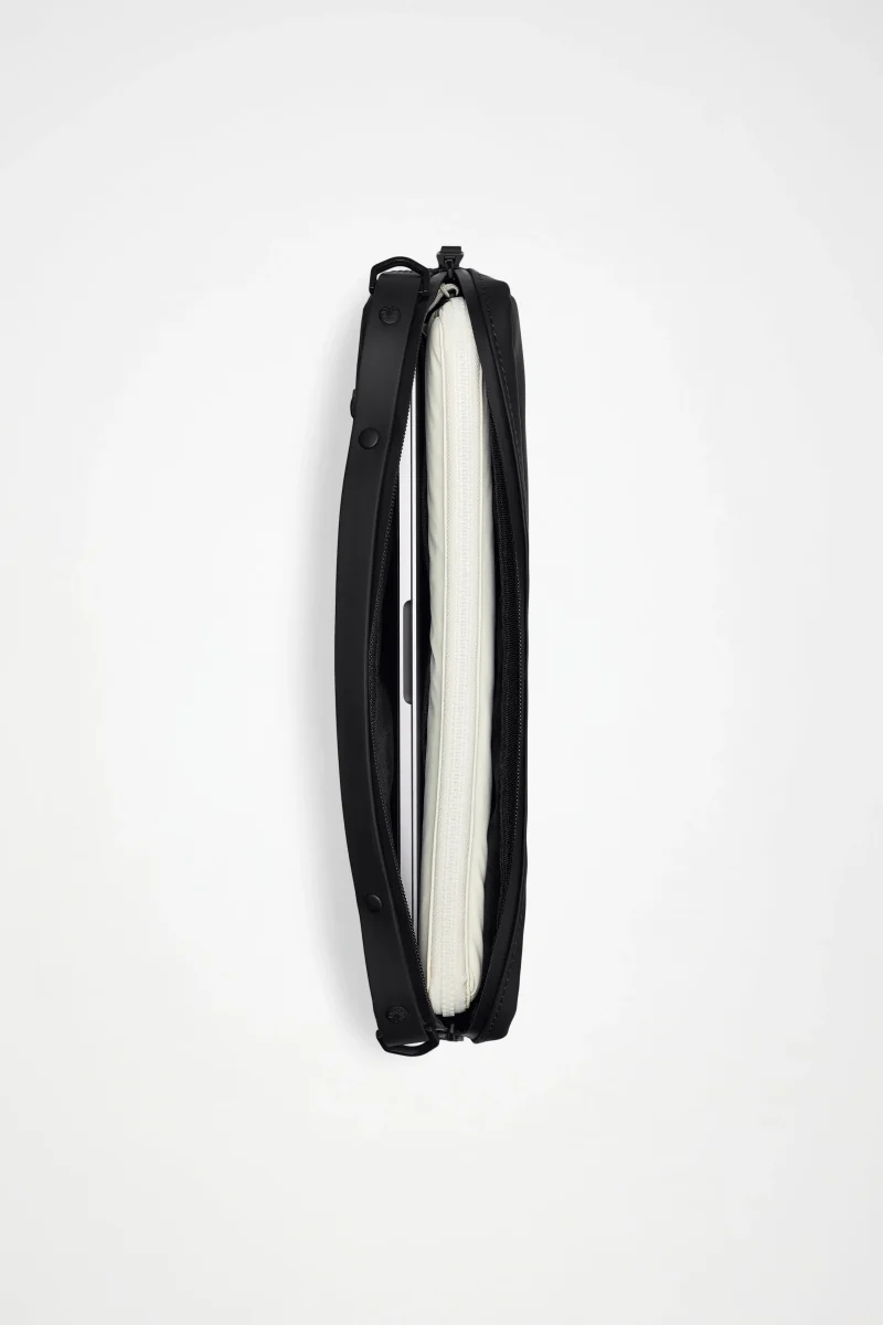 La Laptop Bag è realizzata nell’iconico tessuto PU impermeabile di Rains, progettato per essere robusto, duraturo e piacevole al tatto.