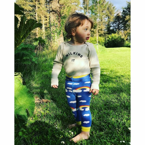 Favolosa Novità Autunno 2022! Leggings Slugs & Snails in fantasia Rainbow Clouds – dietro le nuvole si può vedere un allegro arcobaleno Hanno la vita molto alta, le taglie per i più piccoli possono contenere comodamente anche il pannolino lavabile. Sul sederino è applicato il logo Slugs & Snails. Certificato Oeko-Tek 100 e GOTS, Made in EU