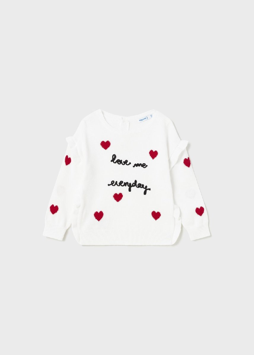 MAYORAL 1364 Maglia primaverile manica lunga intarsi fantasia cuori BIANCO