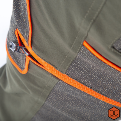 Realizzato in tessuto tecnico elasticizzato traspirante e idrorepellente, garantisce libertà di movimento e mantiene costante la temperatura corporea. L’aggiunta del KEVLAR (tessuto 20 volte più forte dell’acciaio) ad alta grammatura su tutta la gamba e sul sedere, lo rende un capo altamente resistente alle abrasioni e un eccellente antispino e antistrappo. Utilizzabile in qualsiasi condizione climatica e per qualsiasi tipo di caccia, Grazie all’utilizzo di tessuti esclusivamnte ITALIANI di notevole fattura, si presenta comodo, pratico ed elegante. Disponibile dalla taglia 42 alla taglia 66