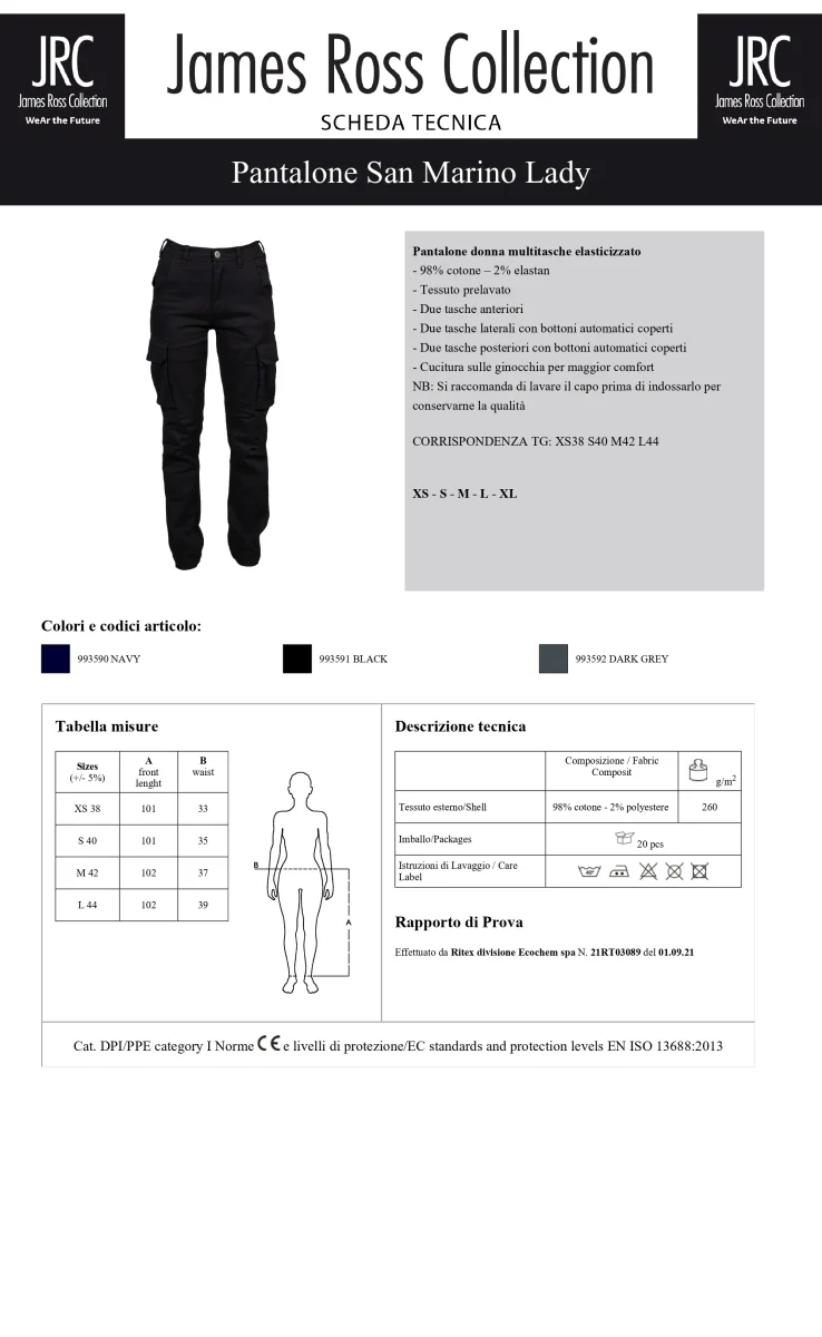 PANTALONE MULTITASCHE ELASTICIZZATO JRC SAN MARINO LADY DONNA