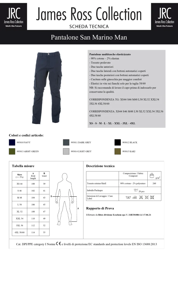 PANTALONE MULTITASCHE ELASTICIZZATO SAN MARINO MAN UOMO
