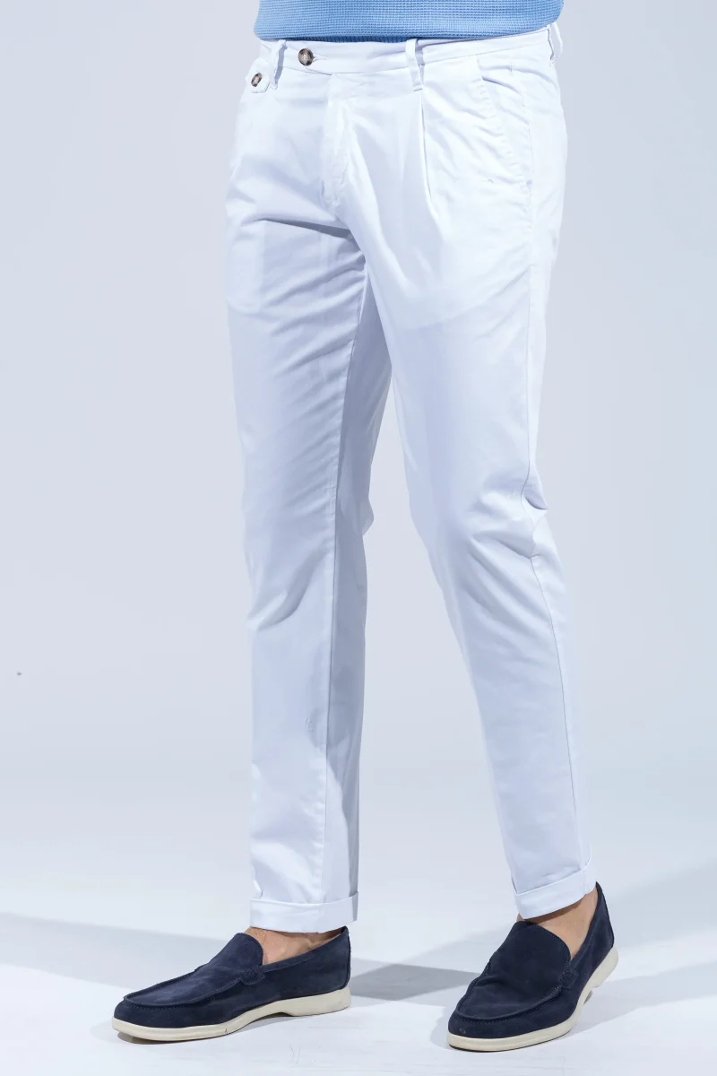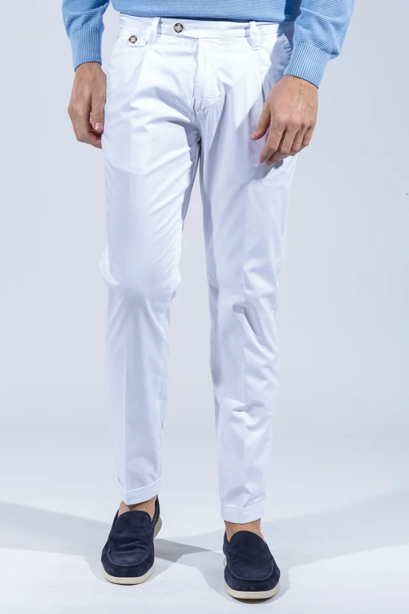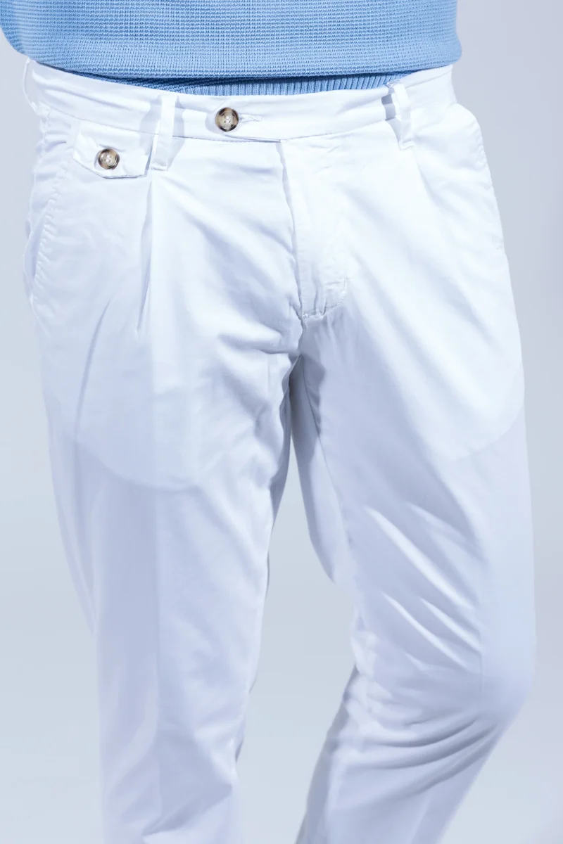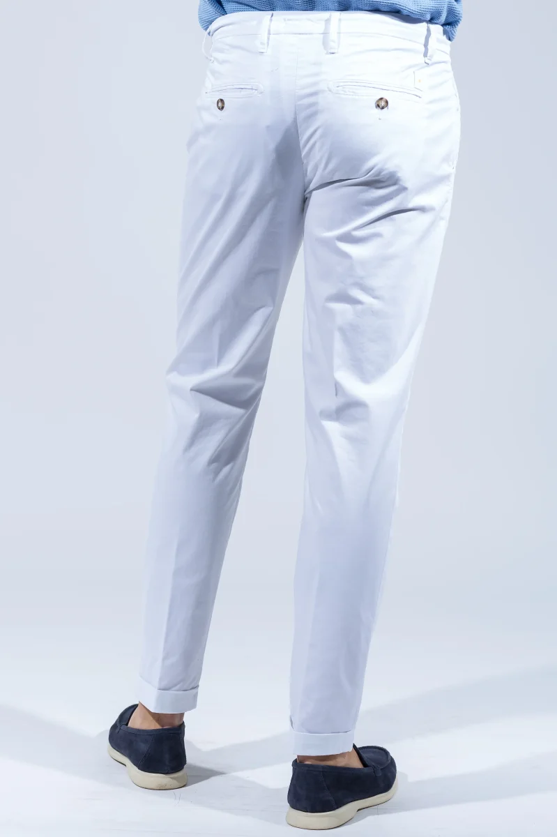 - Due tasche a filetto e bottone sulla parte posteriore