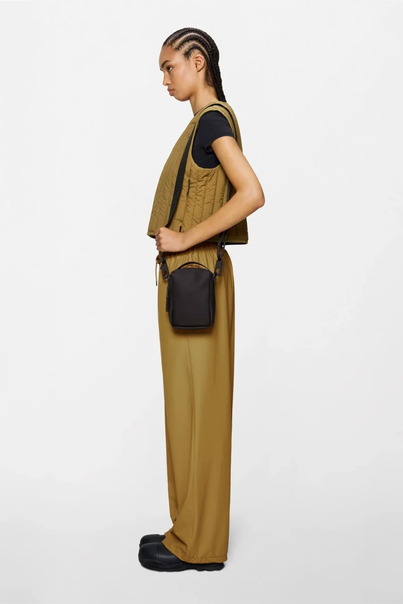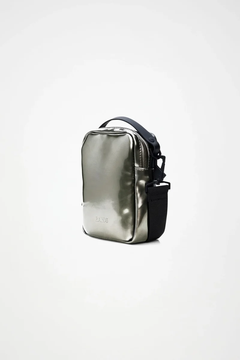 La Reporter Box Bag è realizzata nell’iconico tessuto PU impermeabile di Rains, progettato per essere robusto, duraturo e piacevole al tatto.