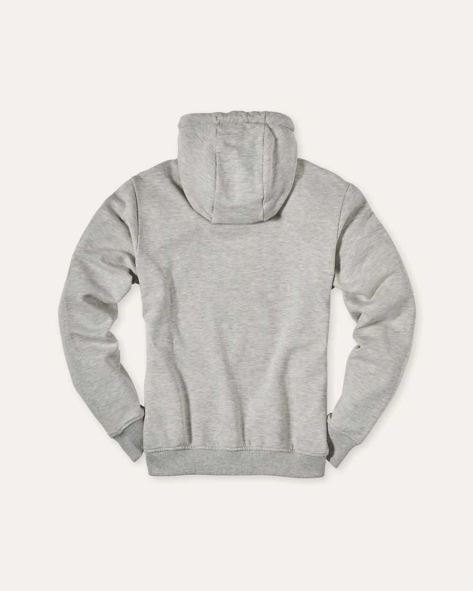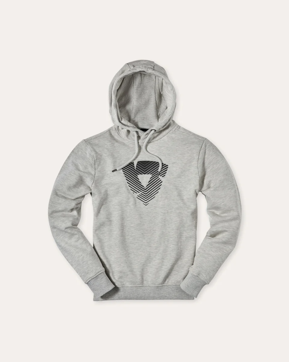 Il cappuccio è rifinito con cuciture che aumentano la sensazione di comfort e vestibilità, permettendo di indossarla per ore senza rinunciare al comfort. La tinta grigia chiara è abbinata allo scudo REV’IT! nero, con logo tridimensionale in stampa gommata, che aggiunge profondità e un tocco distintivo al capo.
