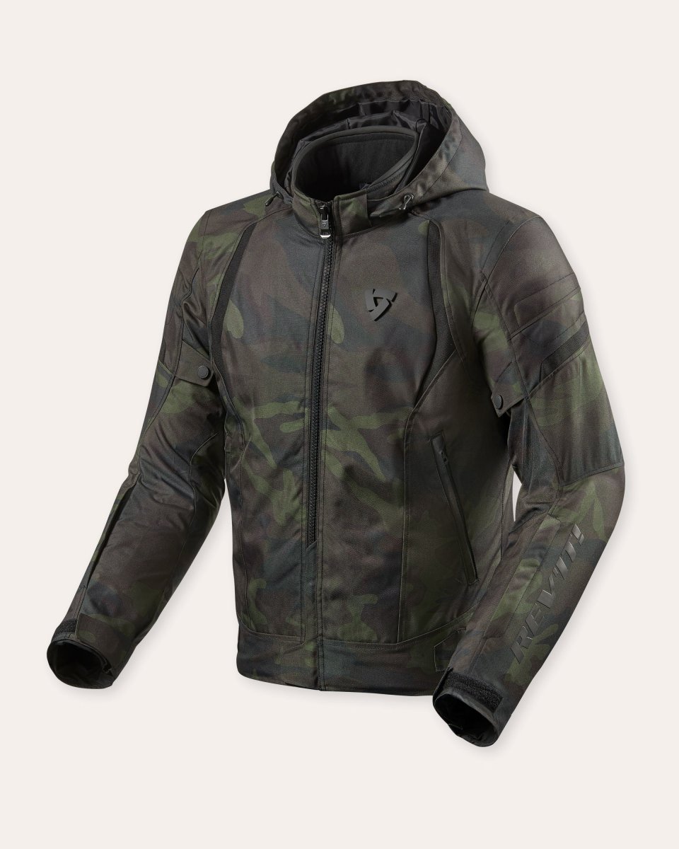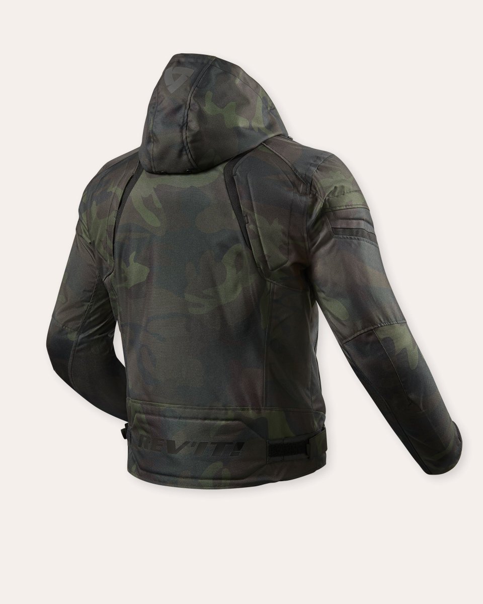 Con l’esterno in poliestere 600D e costine rinforzate, la giacca Flare 2 offre resistenza e leggerezza. Il cappuccio staccabile con cordino di regolazione e il logo laminato riflettente sul cappuccio combinano praticità e visibilità. Il look mimetico alla moda rende questa giacca ideale per motociclisti urbani che vogliono unire protezione e stile casual.