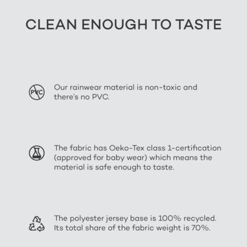 Poliestere 100%,ย rivestimento in poliuretano. Non contiene materiali chimici dannosi (PFAS)