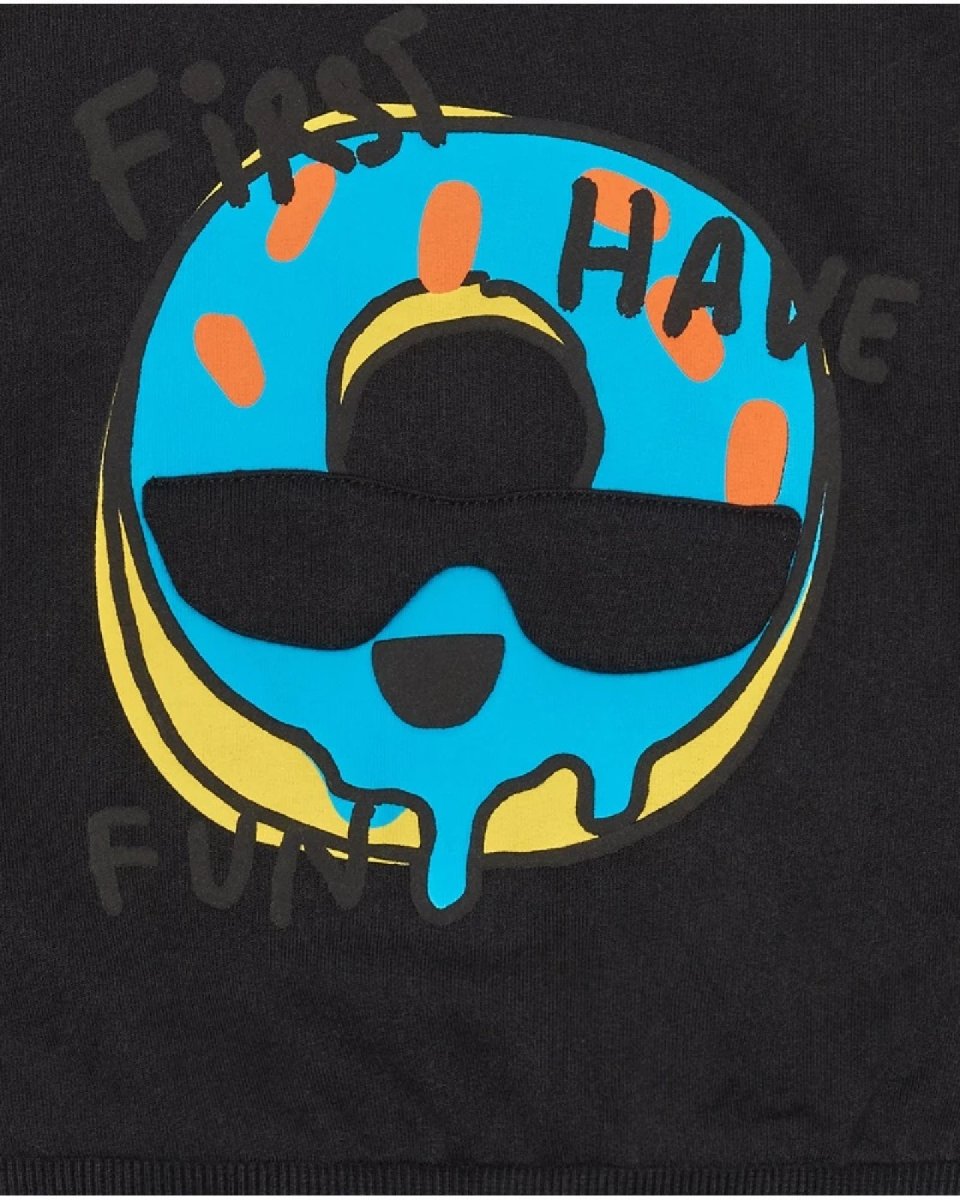 Felpa per bambino nera: Con elementi di skateboard e frasi ispiratrici. Progettata con collo, polsini e vita elasticizzati per una vestibilità comoda. Collezione First Have Fun.