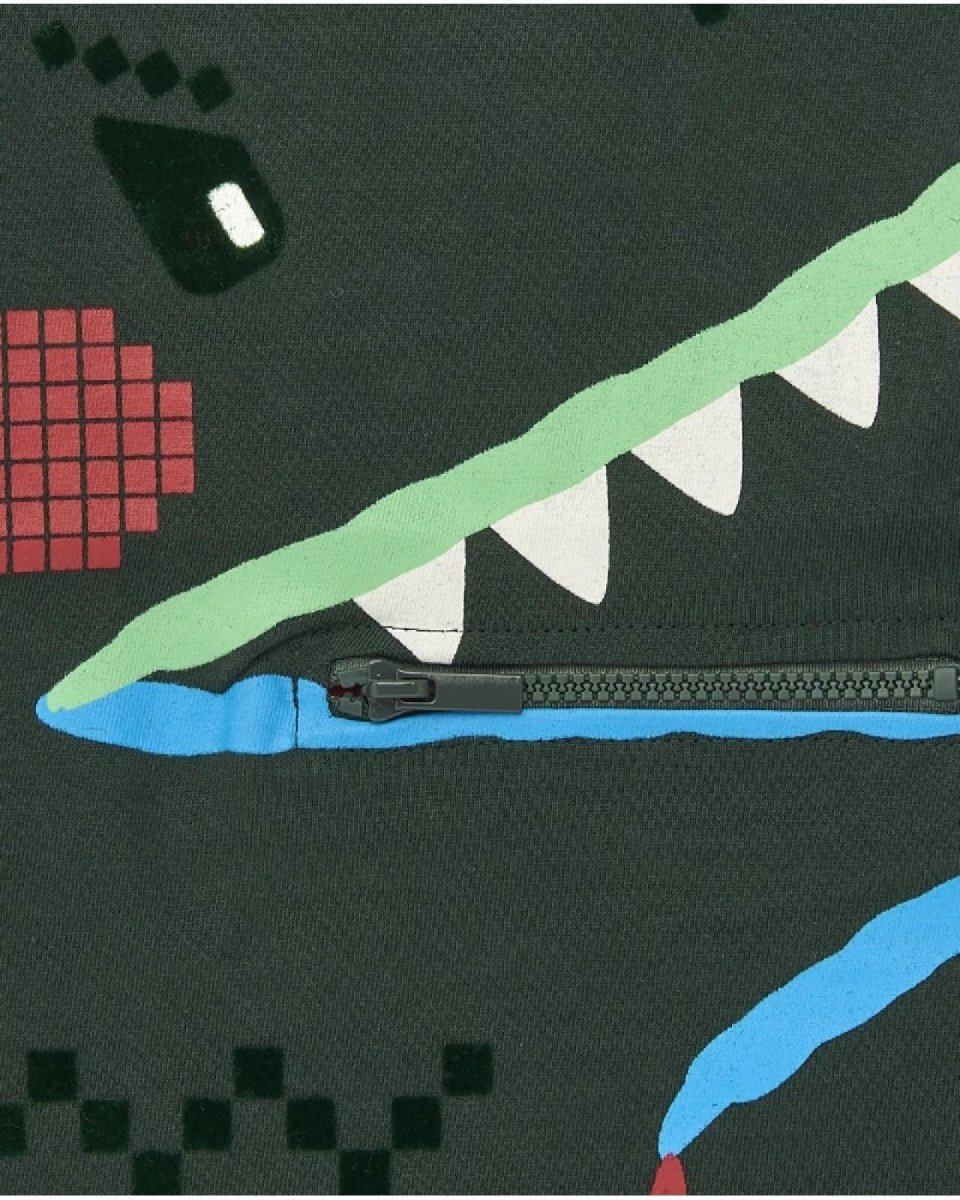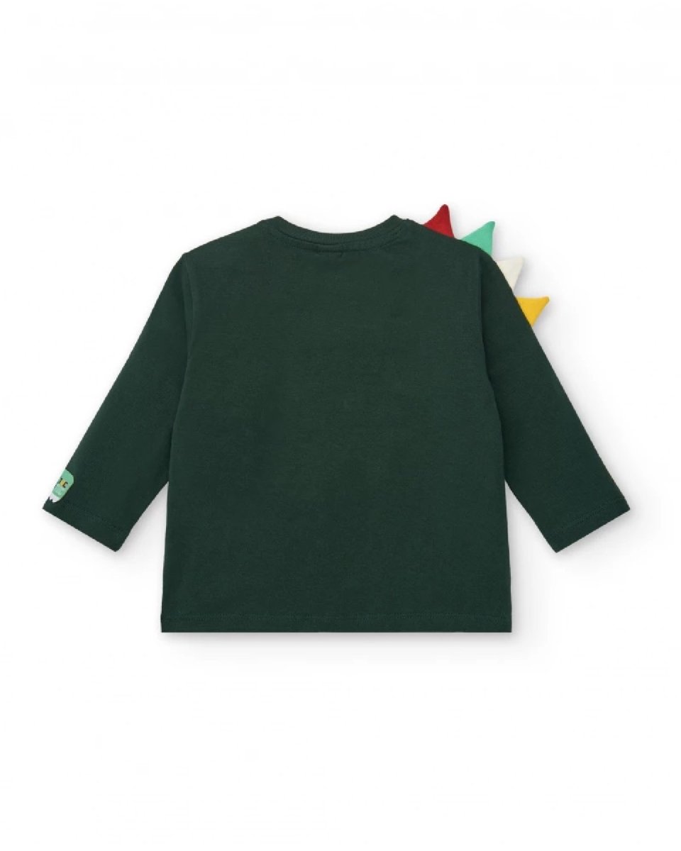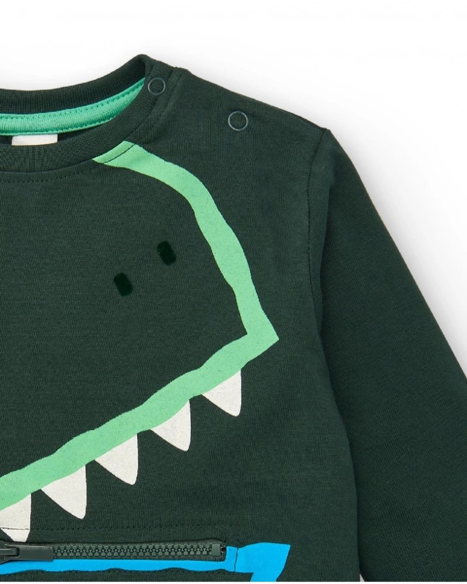 Tuc Tuc T-shirt a maniche lunghe da bambino con design dinosauro e cerniera della collezione Cyber Dino Green