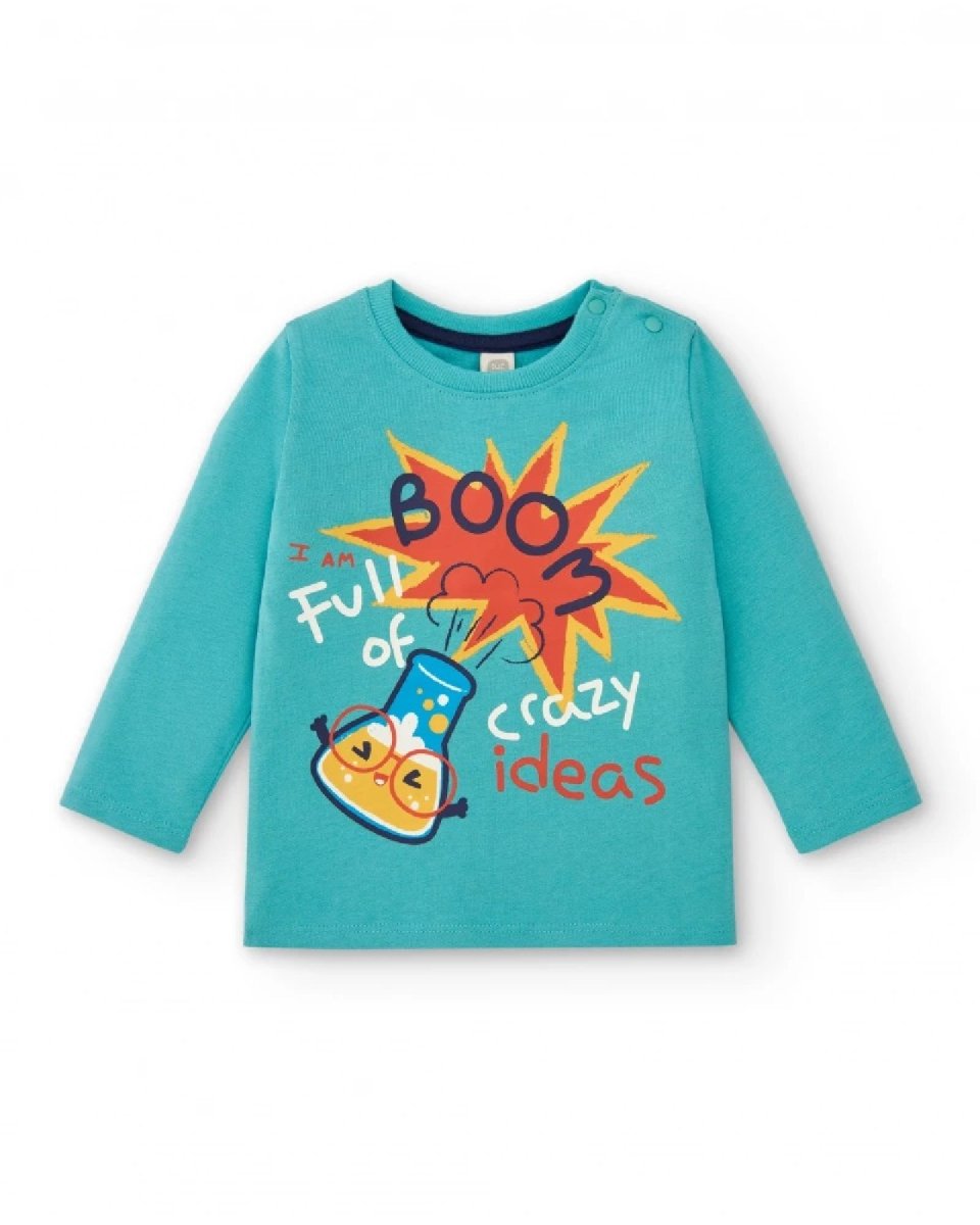 Tuc Tuc T-shirt turchese da bambino con stampa “Full of Crazy ideas”, collezione Big Brains Green