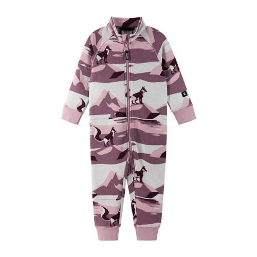 Questa tuta in pile lavorata a maglia ha l’aspetto di un bellissimo maglione rosa melange all’esterno ed è morbida e confortevole all’interno. Offre tutti i vantaggi del pile, si asciuga rapidamente e tiene ben caldo. La cerniera a tutta lunghezza facilita la vestizione, mentre la protezione per il mento protegge il collo e il mento dei più piccoli dai graffi. Comodi polsini a costine su maniche e fondo gamba. Fantasia in colore rosa con la volpe artica che ammira il suo mondo freddo e magico.